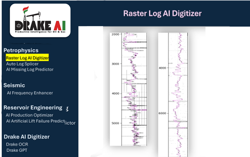 Drake AI uses OCR and deep learning to digitize raster well logs, extracting curves and text into structured formats. This enables fast, accurate analysis and seamless integration with modern geoscience platforms.