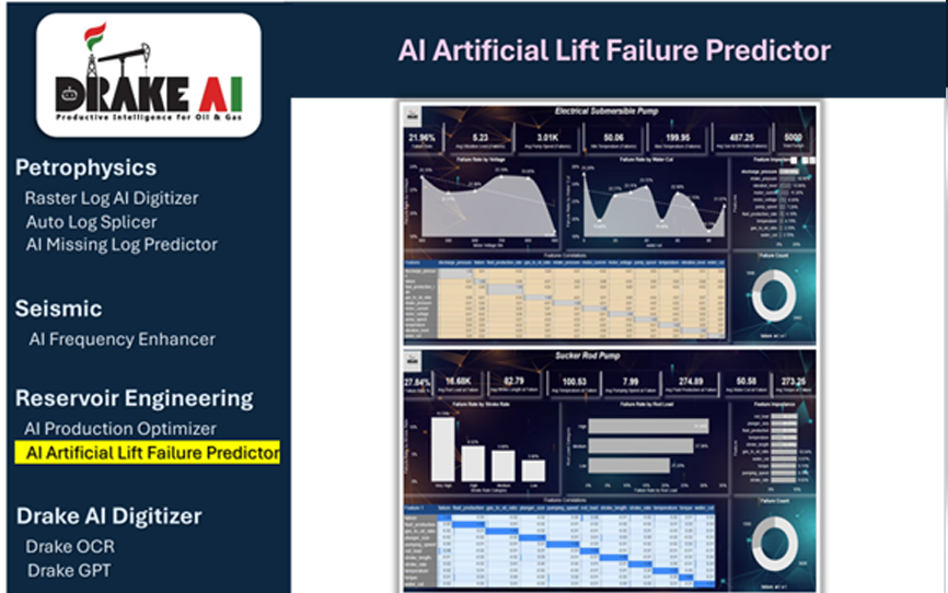 Drake AI uses advanced AI/ML to monitor real-time sensor data from SRP and ESP systems, detecting anomalies and predicting failures early. This enables predictive maintenance, reduces downtime, and extends equipment life.